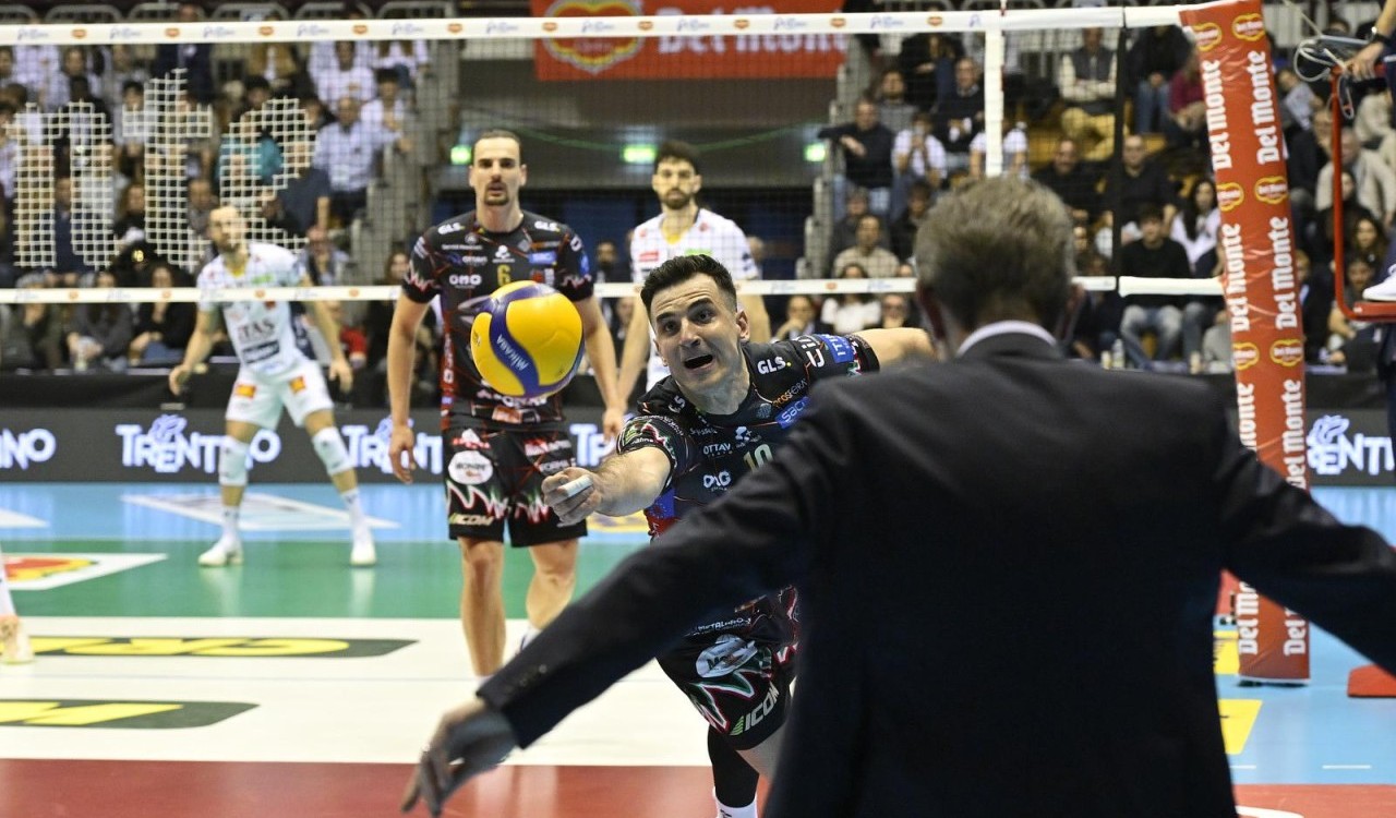 Il primo tempo di Russo apre il terzo parziale. Ben Tara piazza un muro su Ramon, poi l’attacco del 5-7. Lo schiacciatore spagnolo di casa Itas mette a segno due ace consecutivi e aggancia il pari sul 9-9 e coach Lorenzetti chiama il time out. Al rientro in campo Perugia riprende la strada del vantaggio con gli attacchi di Semeniuk, Plotnytskyi e Ben Tara. Trento torna a contatto con Lavia, ma i Block Devils ampliano di nuovo il margine, con un altro ace di Plotnytskyi e un’altra bordata di Ben Tara, che poi con un ulteriore servizio vincente porta i suoi avanti di cinque lunghezze nella fase più calda (15-20). Ace anche per Semeniuk, Trento tenta la rimonta con l’attacco di Faure, ma la spike di Russo porta i suoi a due punti dalla fine del match. Set point agganciato da Crosato in maniout. Il primo è annullato dal maniout di Lavia, chiude Plotnytskyi 20-25.