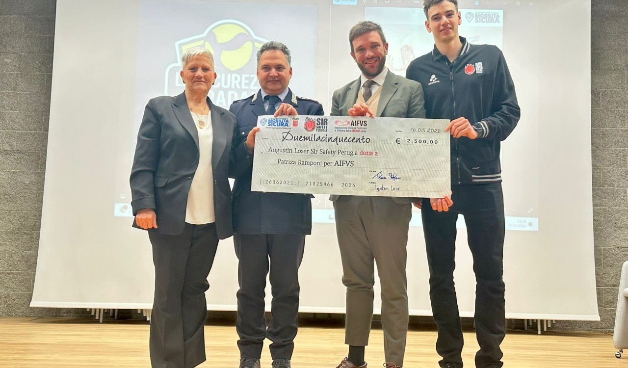 Nella giornata conclusiva, che si era tenuta all’Auditorium dell’Istituto Capitini di Perugia il 16 marzo scorso, era stato testimonial il centrale argentino di casa bianconera, Austin Loser e in quella occasione era stato consegnato alla società Sir Susa Scai Perugia un assegno di 2.500 euro per la partecipazione. La società aveva già annunciato che avrebbe devoluto l’intera somma all’Associazione Familiari e Vittime della Strada e la consegna avverrà prima del fischio di inizio di Gara 3 della semifinale scudetto contro Piacenza.