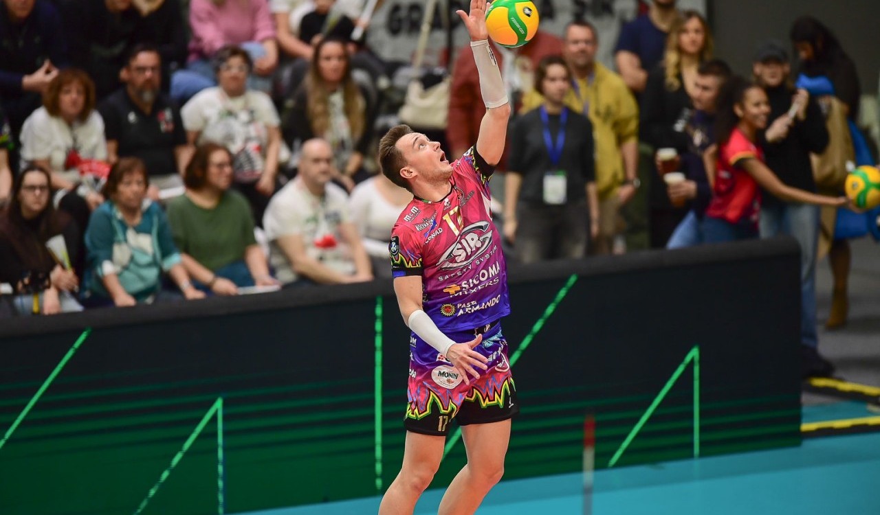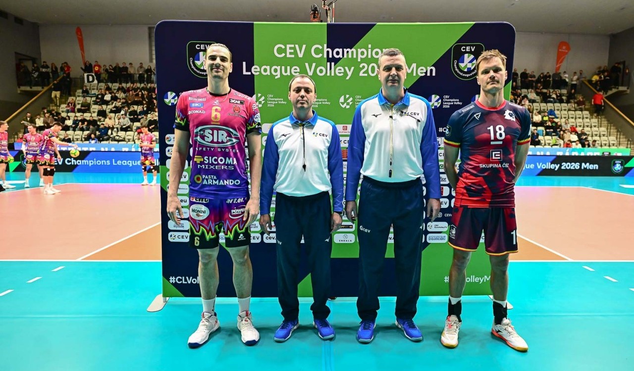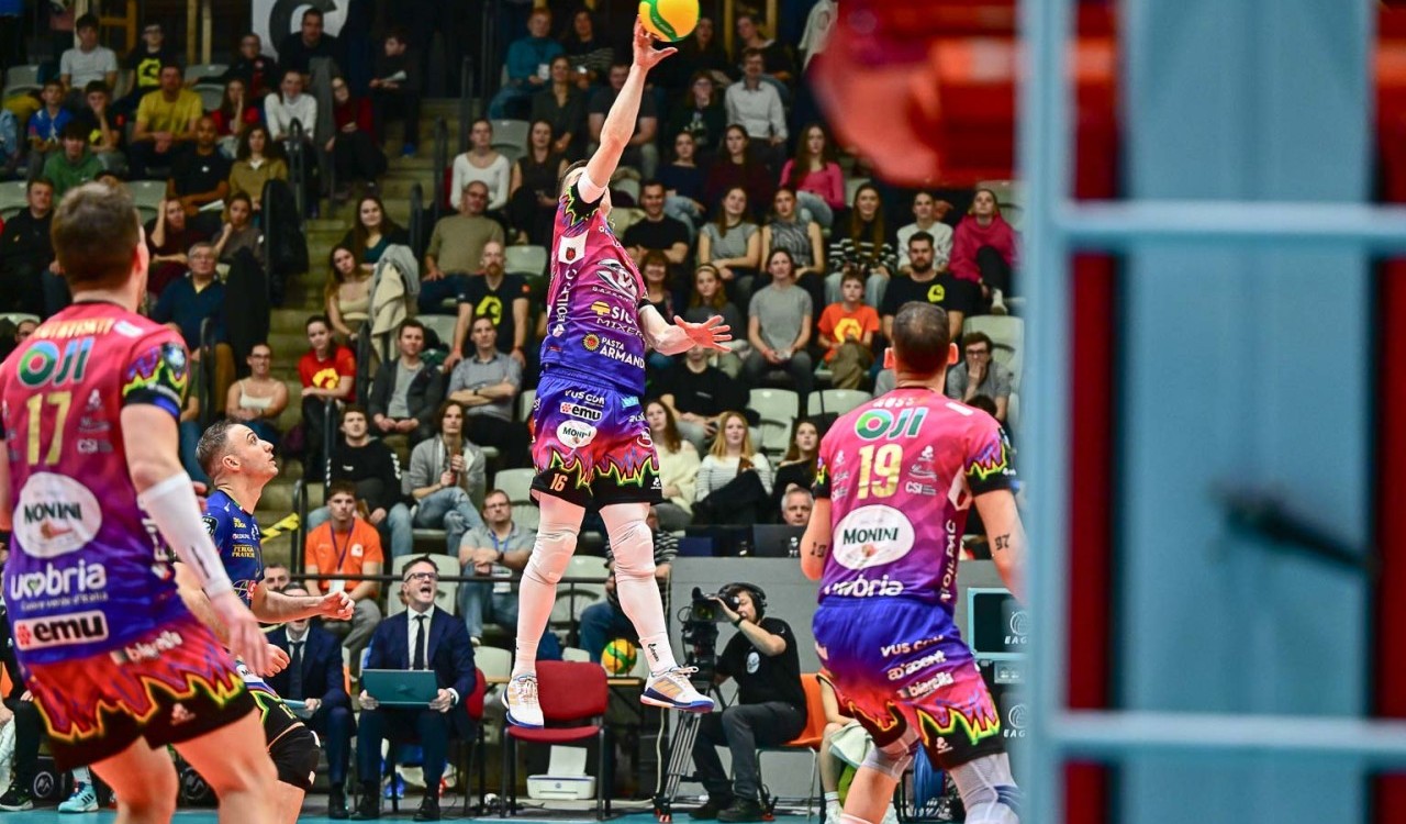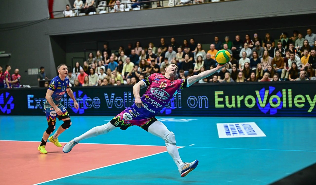 Loser va a segno dal centro e Plotnytskyi firma il primo ace della partita (3-1). Ben Tara consolida. Kollator mette a terra la diagonale vincente e Semeniuk chiude lo scambio lungo del 5-2. Muro di Russo su Pablo Crer e maniout di Ben Tara ai danni di Lucas Conde e la Sir Sicoma Monini Perugia avanza 8-3. I Block Devils consolidano il vantaggio spingendo forte al servizio e crescendo a muro. Il primo tempo di Russo fa volare i bianconeri avanti 13-4. Semeniuk colpisce in pipe, Benda recupera due lunghezze con due maniout, ma Perugia continua la sua cavalcata allungando a +11 (6-17). Lo schiacciatore polacco di casa bianconera traghetta i suoi verso il finale del set, i padroni di casa arrivano a quota 10 con il primo tempo di Crer, ma l’errore al servizio di Conde porta la Sir ad un passo dal setpoint, agganciato da Plotnytskyi in diagonale. Benda annulla il primo in diagonale stretta, chiude Loser in primo tempo (25-13).